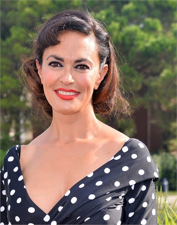 Look da pin up per la bella italiana Maria Grazie Cucinotta che a 46 sfoggia un viso radioso e naturale.